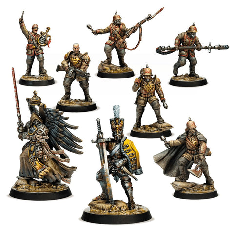 The Stosstruppen of the Free State of Prussia are amongst the most storied and fearsome of New Antioch’s soldiers. Storming through the winding web of trenches that scar No Man’s Land, the Stosstruppen move with peerless coordination as they deliver their famously brutal shock assaults. Even a small force of these noble soldiers can smash through the toughest Heretic fortification with nought but a hail of grenades, a furious flurry of clubs, and a jaw full of gritted teeth and prayer.